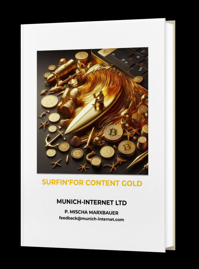 Der Orginal-Titel der Englischen Ausgabe „Prompt-Goldmine“ hat uns nicht gefallen, aber es kommt das Wort Prompt vor, womit jedoch die wenigsten etwas anfangen können. Deshalb haben wir das tolle eBook einfach „Surfin‘ for Content Gold“ genannt. Es geht darin in der Hauptsache um das PROMPTING, was wir überhaupt als die wichtigste Fähigkeit des gesamten KI-Zeitalters empfinden.